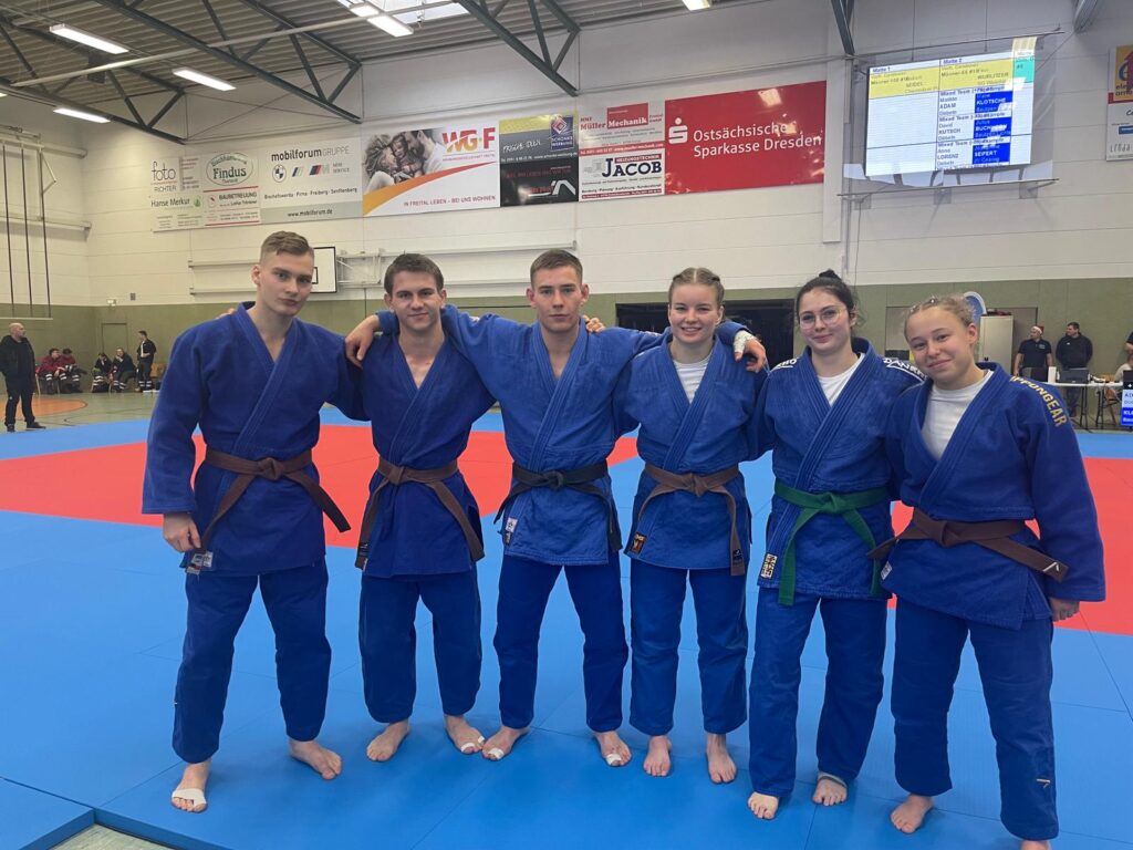 Außerdem stellte das Team gemeinsam mit dem PSC Bautzen, dem TSV Reichenberg Boxdorf und dem Judoverein aus Coswig eine Mannschaft für den Mixed-Mannschaftswettkampf. Mit einem Ergebnis von 5:1, aber wirklich spannenden und knappen Kämpfen, konnte diese Auseinandersetzung gegen Döbeln gewonnen werden. Somit konnten wir auch als Mannschaft noch eine Goldmedaille holen.